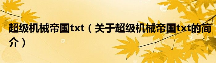 本文關于超級機械帝國txt的簡介就講解完畢,希望對大家有所幫助。