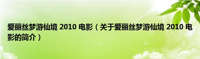 大家好,愛麗絲夢游仙境 2010 電影,關于愛麗絲夢游仙境 2010 電影的簡介很多人還不知道,現在讓我們一起來看看吧!