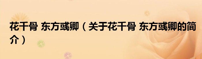 本文關于花千骨 東方彧卿的簡介就講解完畢,希望對大家有所幫助。