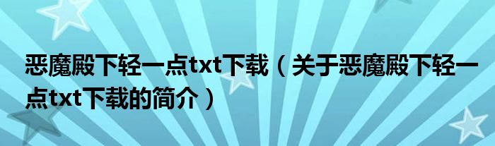 本文關于惡魔殿下輕一點txt下載的簡介就講解完畢,希望對大家有所幫助。