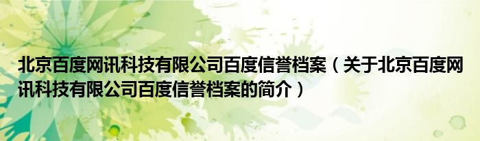 本文關于北京百度網訊科技有限公司百度信譽檔案的簡介就講解完畢,希望對大家有所幫助。