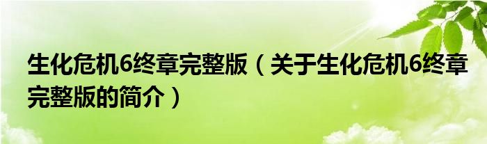 大家好,生化危機6終章完整版,關(guān)于生化危機6終章完整版的簡介很多人還不知道,現(xiàn)在讓我們一起來看看吧!