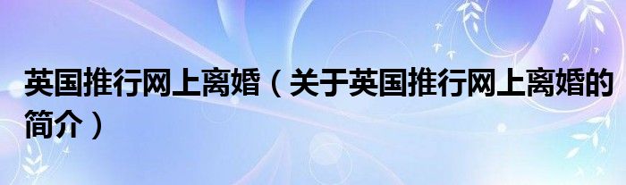 本文關于英國推行網上離婚的簡介就講解完畢,希望對大家有所幫助。