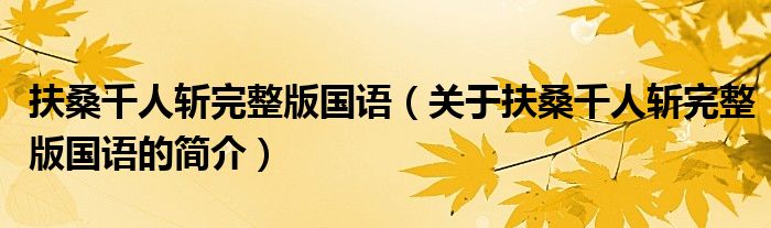 本文關(guān)于扶桑千人斬完整版國語的簡介就講解完畢,希望對大家有所幫助。
