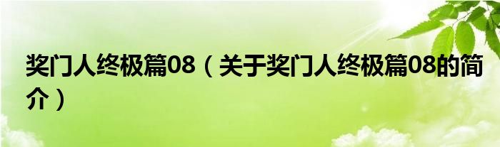 本文關(guān)于獎門人終極篇08的簡介就講解完畢,希望對大家有所幫助。