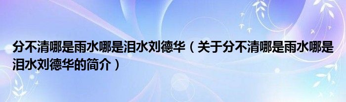 大家好,分不清哪是雨水哪是淚水劉德華,關于分不清哪是雨水哪是淚水劉德華的簡介很多人還不知道,現在讓我們一起來看看吧!