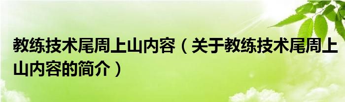 大家好,教練技術尾周上山內容,關于教練技術尾周上山內容的簡介很多人還不知道,現在讓我們一起來看看吧!