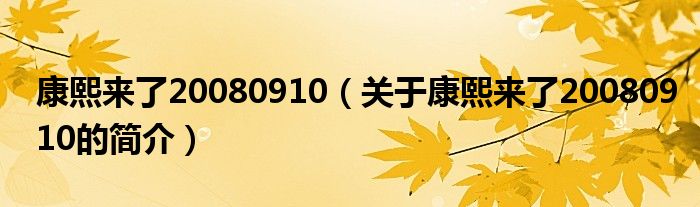大家好,康熙來了20080910,關于康熙來了20080910的簡介很多人還不知道,現在讓我們一起來看看吧!