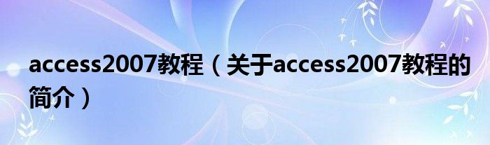 大家好,access2007教程,關于access2007教程的簡介很多人還不知道,現在讓我們一起來看看吧!