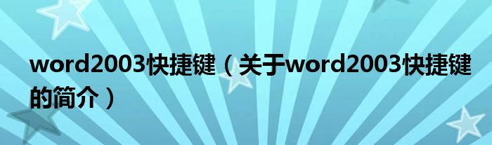 本文關(guān)于word2003快捷鍵的簡介就講解完畢,希望對大家有所幫助。
