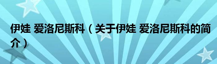 本文關于伊娃 愛洛尼斯科的簡介就講解完畢,希望對大家有所幫助。