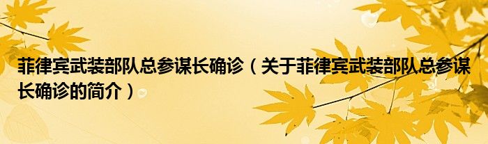 本文關(guān)于菲律賓武裝部隊(duì)總參謀長(zhǎng)確診的簡(jiǎn)介就講解完畢,希望對(duì)大家有所幫助。