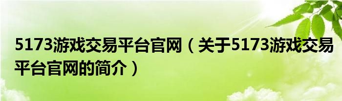 本文關于5173游戲交易平臺官網的簡介就講解完畢,希望對大家有所幫助。