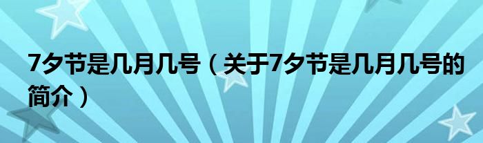 本文關于7夕節是幾月幾號的簡介就講解完畢,希望對大家有所幫助。