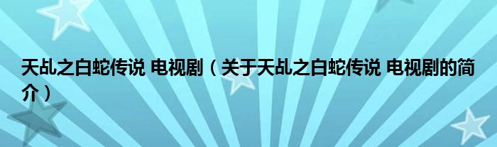 本文關于天乩之白蛇傳說 電視劇的簡介就講解完畢,希望對大家有所幫助。