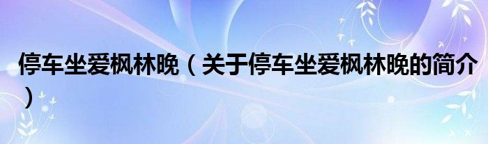 本文關于停車坐愛楓林晚的簡介就講解完畢,希望對大家有所幫助。