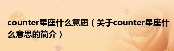 本文關(guān)于counter星座什么意思的簡介就講解完畢,希望對大家有所幫助。