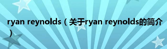 本文關(guān)于ryan reynolds的簡(jiǎn)介就講解完畢,希望對(duì)大家有所幫助。