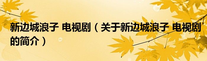 本文關于新邊城浪子 電視劇的簡介就講解完畢,希望對大家有所幫助。