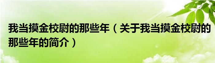 本文關于我當摸金校尉的那些年的簡介就講解完畢,希望對大家有所幫助。