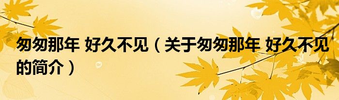 本文關(guān)于匆匆那年 好久不見的簡介就講解完畢,希望對大家有所幫助。