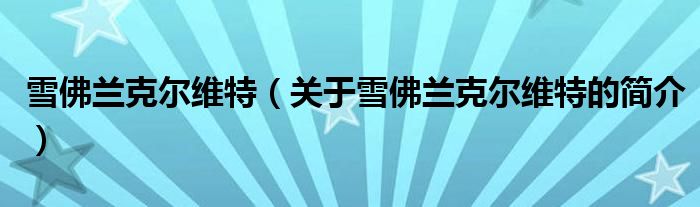 大家好,雪佛蘭克爾維特,關于雪佛蘭克爾維特的簡介很多人還不知道,現在讓我們一起來看看吧!
