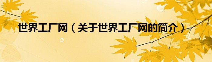 大家好,世界工廠網,關于世界工廠網的簡介很多人還不知道,現在讓我們一起來看看吧!