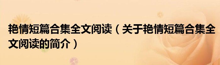 本文關于艷情短篇合集全文閱讀的簡介就講解完畢,希望對大家有所幫助。