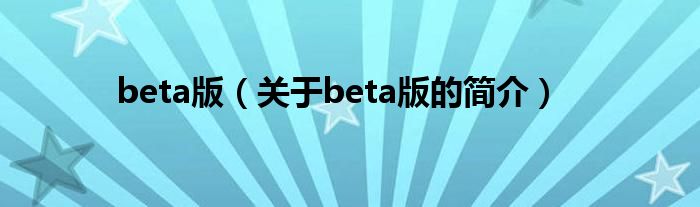 大家好,beta版,關于beta版的簡介很多人還不知道,現在讓我們一起來看看吧!