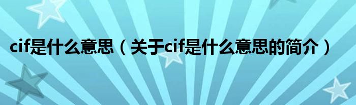 本文關于cif是什么意思的簡介就講解完畢,希望對大家有所幫助。