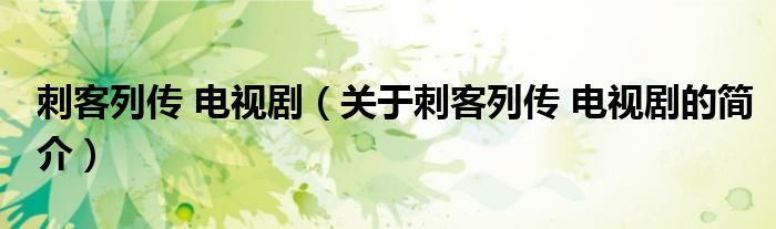 本文關于刺客列傳 電視劇的簡介就講解完畢,希望對大家有所幫助。