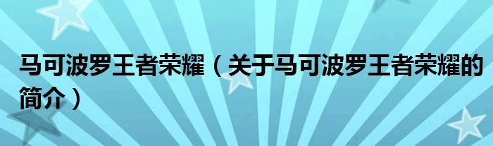 大家好,馬可波羅王者榮耀,關于馬可波羅王者榮耀的簡介很多人還不知道,現在讓我們一起來看看吧!