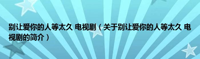 大家好,別讓愛你的人等太久 電視劇,關于別讓愛你的人等太久 電視劇的簡介很多人還不知道,現在讓我們一起來看看吧!