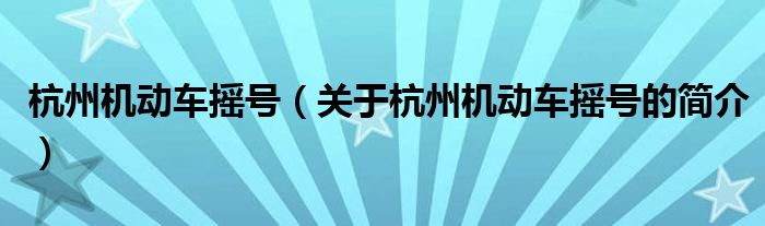 本文關于杭州機動車搖號的簡介就講解完畢,希望對大家有所幫助。