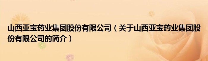 本文關(guān)于山西亞寶藥業(yè)集團股份有限公司的簡介就講解完畢,希望對大家有所幫助。