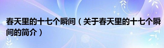 本文關于春天里的十七個瞬間的簡介就講解完畢,希望對大家有所幫助。