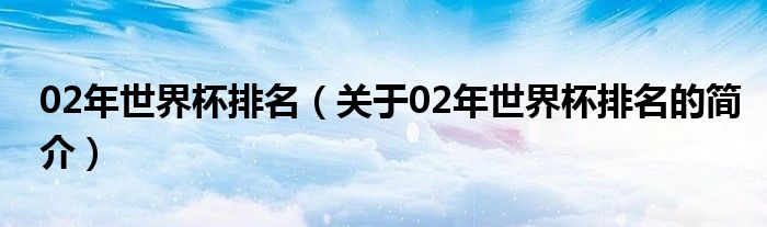 本文關于02年世界杯排名的簡介就講解完畢,希望對大家有所幫助。