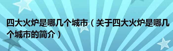 本文關(guān)于四大火爐是哪幾個(gè)城市的簡介就講解完畢,希望對(duì)大家有所幫助。