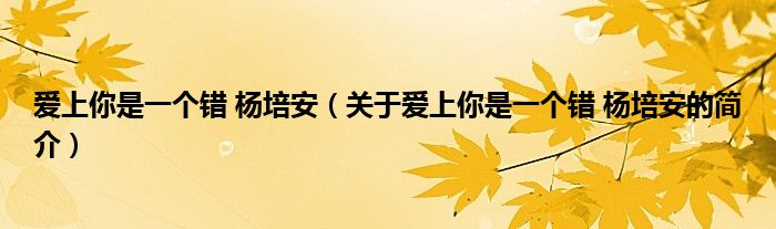 大家好,愛上你是一個錯 楊培安,關于愛上你是一個錯 楊培安的簡介很多人還不知道,現在讓我們一起來看看吧!