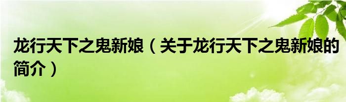 本文關于龍行天下之鬼新娘的簡介就講解完畢,希望對大家有所幫助。