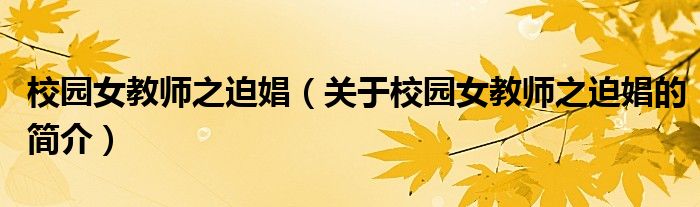 本文關于校園女教師之迫娼的簡介就講解完畢,希望對大家有所幫助。