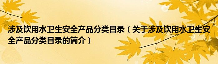 本文關于涉及飲用水衛生安全產品分類目錄的簡介就講解完畢,希望對大家有所幫助。