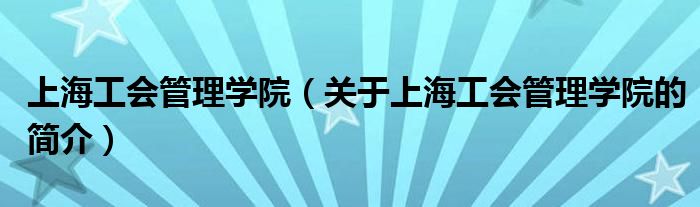 大家好,上海工會管理學院,關于上海工會管理學院的簡介很多人還不知道,現在讓我們一起來看看吧!