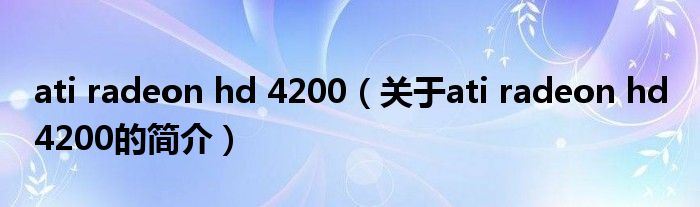 大家好,ati radeon hd 4200,關(guān)于ati radeon hd 4200的簡介很多人還不知道,現(xiàn)在讓我們一起來看看吧!