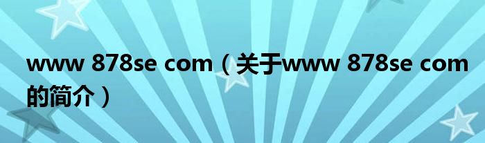 本文關(guān)于www 878se com的簡介就講解完畢,希望對大家有所幫助。