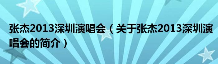 本文關(guān)于張杰2013深圳演唱會的簡介就講解完畢,希望對大家有所幫助。