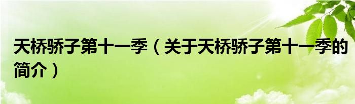 本文關(guān)于天橋驕子第十一季的簡介就講解完畢,希望對大家有所幫助。