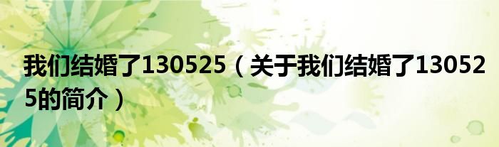 大家好,我們結婚了130525,關于我們結婚了130525的簡介很多人還不知道,現在讓我們一起來看看吧!