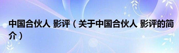 本文關(guān)于中國(guó)合伙人 影評(píng)的簡(jiǎn)介就講解完畢,希望對(duì)大家有所幫助。