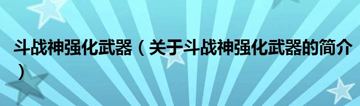 大家好,斗戰神強化武器,關于斗戰神強化武器的簡介很多人還不知道,現在讓我們一起來看看吧!